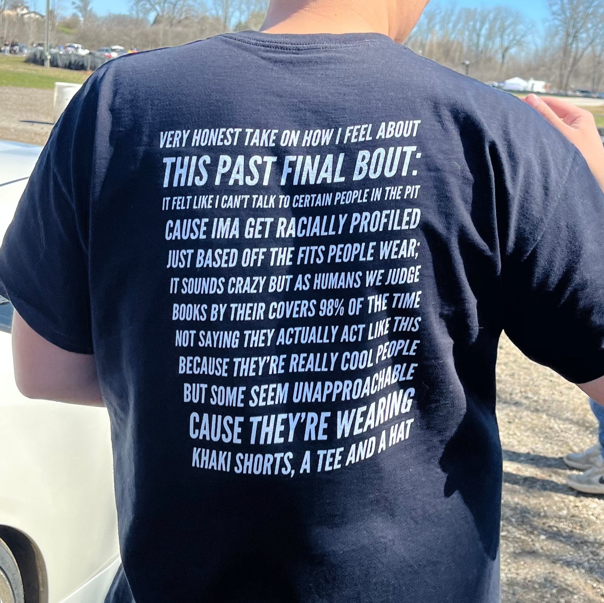 The 100% cotton unisex classic tee will help you be unapproachable at the next Final Bout. It sits nicely, maintains sharp lines around the edges, and goes perfectly with khaki shorts and a hat.